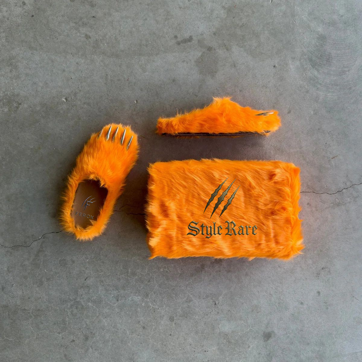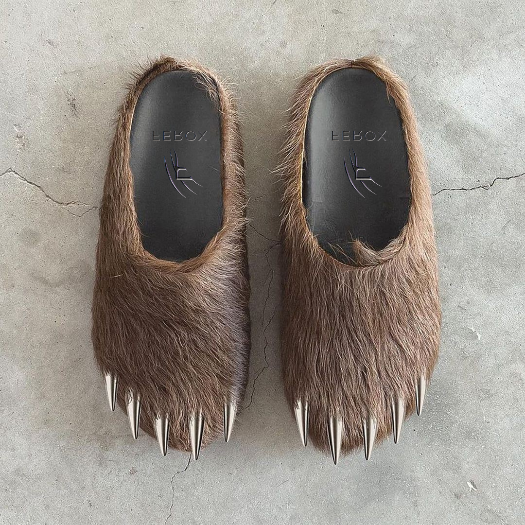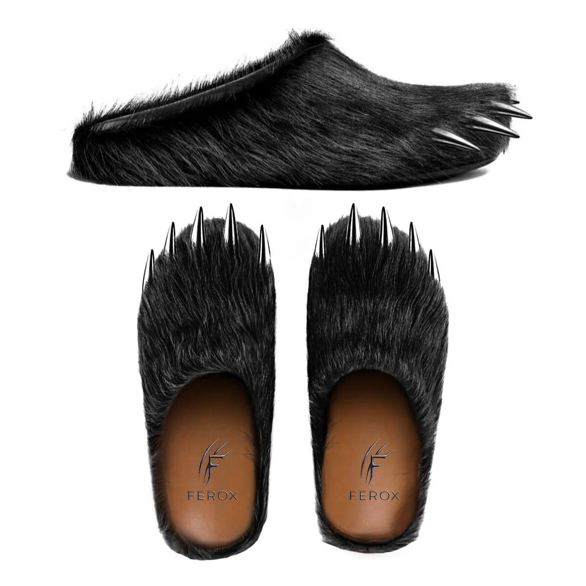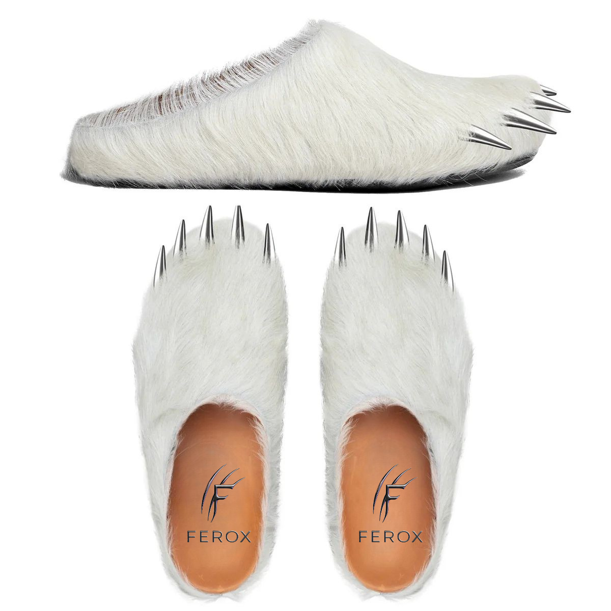 Entre mode et monstruosité, FEROX redéfinit ce que veut dire avoir du style sauvage. Recouverte de fourrure et armée de griffes en métal, cette paire claque fort — un vrai statement pour ceux qui refusent la normalité. Inspirée par la culture audacieuse et l’énergie brute de la rue, FEROX n’est pas juste une chaussure, c’est une attitude.